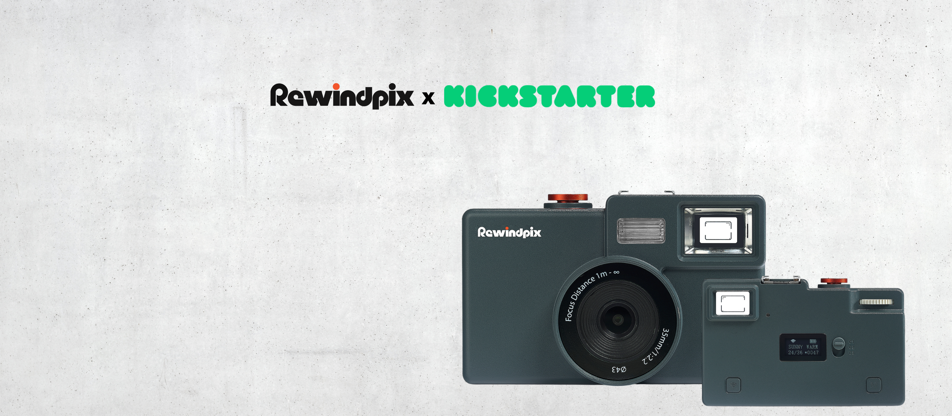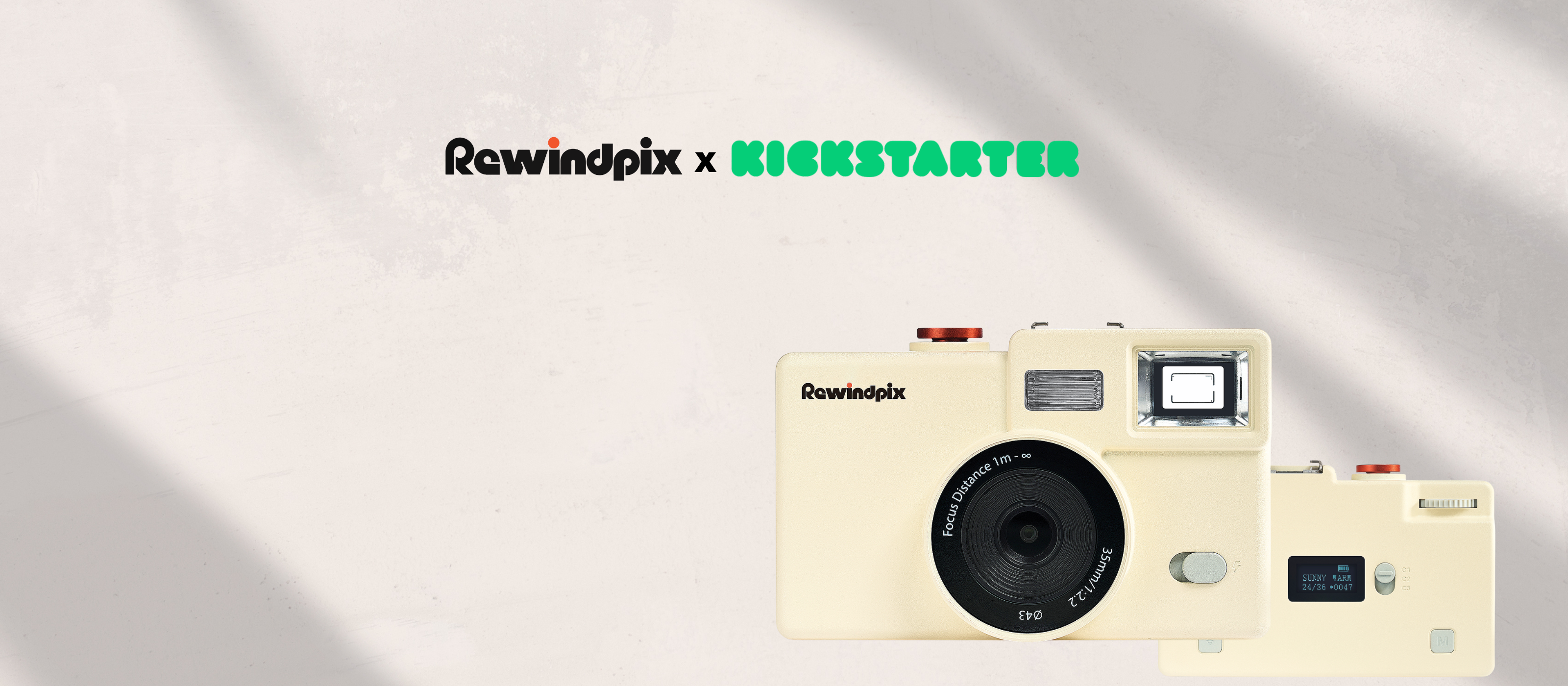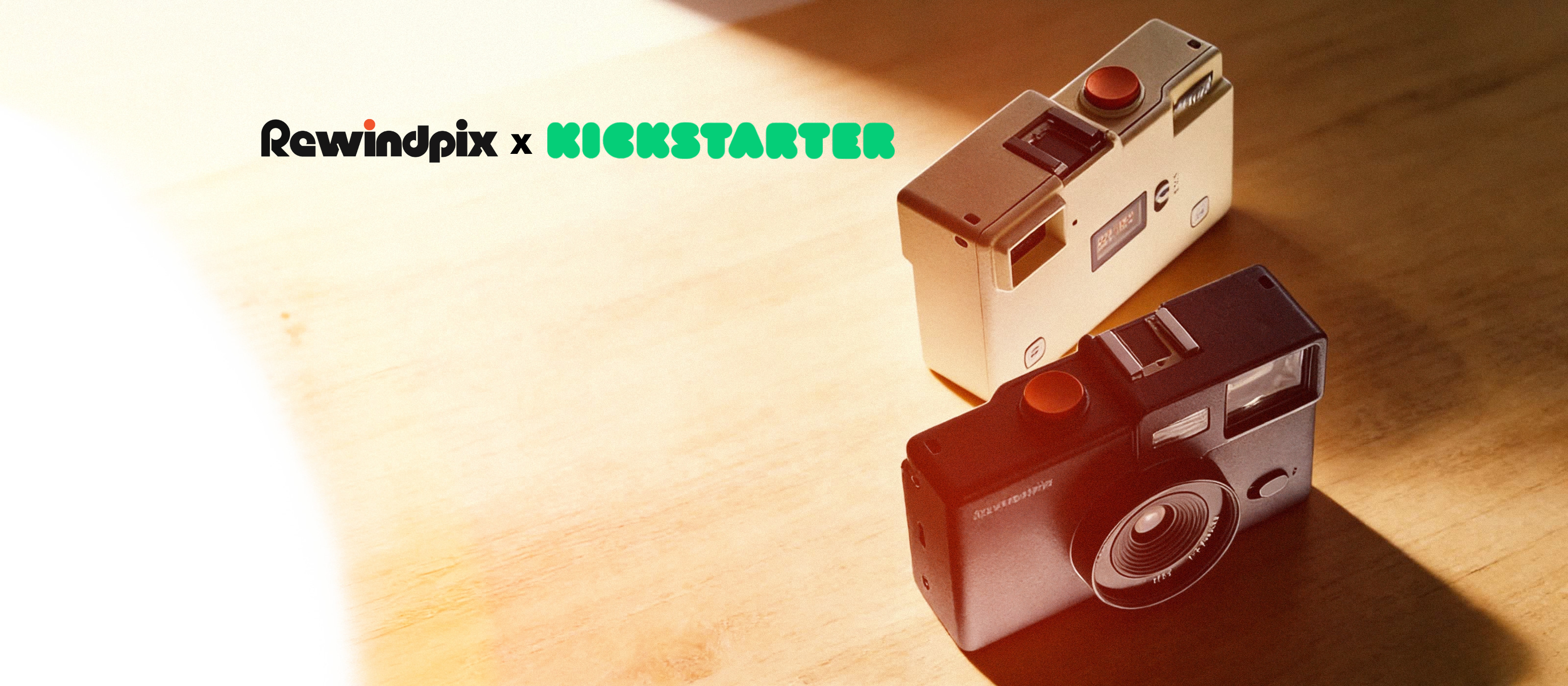 Rewindpix is a screen-free digital camera with a film-like experience, featuring an optical viewfinder, winder, and app-based filters.